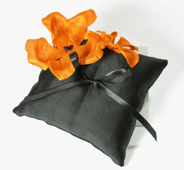 Silk Satin Bridal Pillow with Orange silk flowers with black beads. Available on